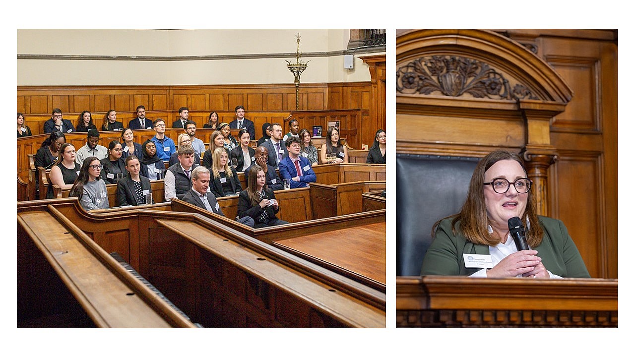 Set against the impressive backdrop of the Grand Court Room, the evening featured inspiring presentations from President Marie Dancer, Professor Jane Jarman (Education & Training Committee), Daniel Harley (International Chair), Shannon Mould (NJLD Chair), and Elliot Bedwell-Mintz (Co-Chair, Equality & Diversity Committee).