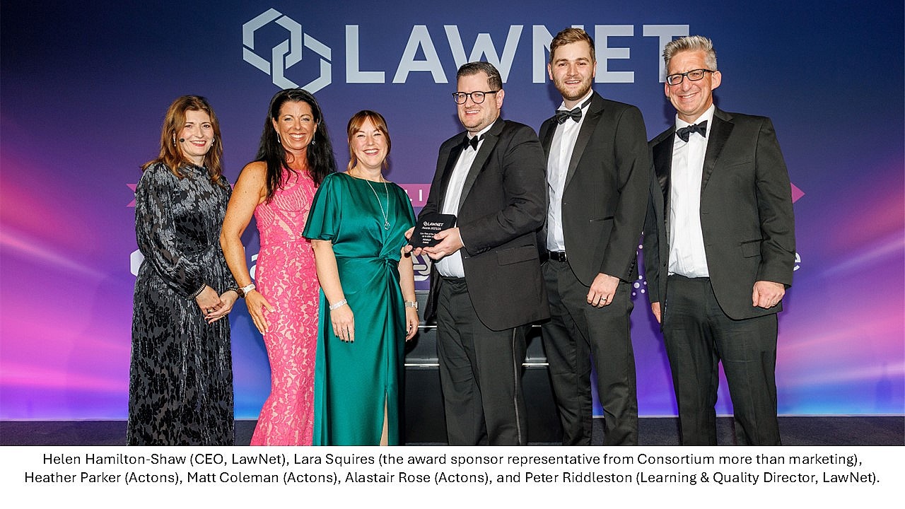 LawNet is a leading network of independent law firms across the UK, and the annual awards celebrate excellence in strategy, client service, innovation, and performance. The award also comes in the year where Actons are celebrating 25 years as members of LawNet.